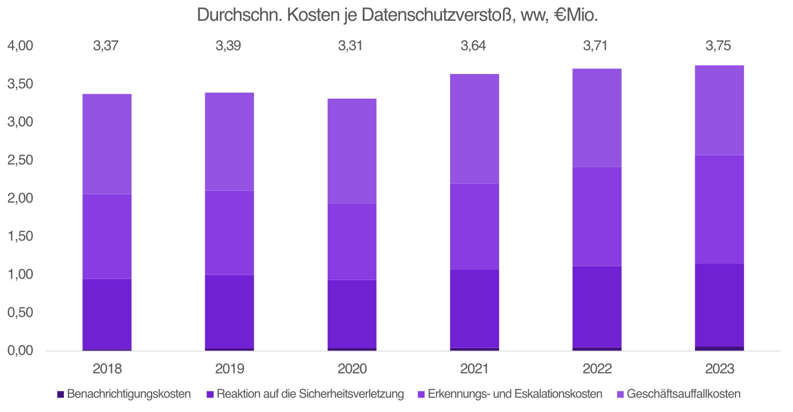 Die durchschnittlichen Kosten je Datenschutzverstoß durchbrach im Jahr 2023 weltweit erstmals die US$ 4 Mio.-Marke (€ 3,75 Mio.). Bei einer Attacke ohne Lösegeldforderung vergingen im Durchschnitt mehr als 200 Tage, bis diese vom betroffenen Unternehmen entdeckt wurde. Die IT-Sicherheit ist bereits heute zu einem wirtschaftlichen Faktor für Unternehmen geworden.